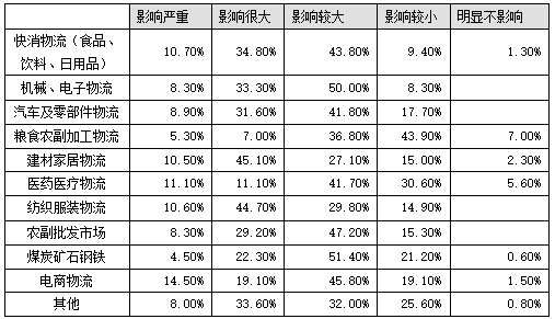 表1:不同領域物流行業疫情影響
