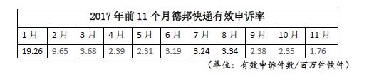 值得一提的是,不久前成功“過會(huì)”的德邦物流,其旗下的德邦快遞,11月的有效申訴率,與六家上市公司相比,僅排在順豐速運(yùn)之后為1.76,低于其它五家上市公司。