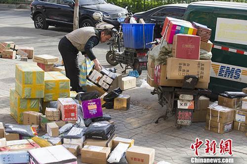 資料圖:物流快遞工作人員正在分揀快遞。中新社記者 張?jiān)?攝