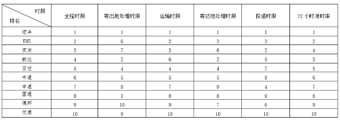 600公里以下平均時限為37.59小時,600-1500公里平均時限為53.7小時,1500-2500公里平均時限為67.24小時,2500公里以上平均時限為89.13小時。