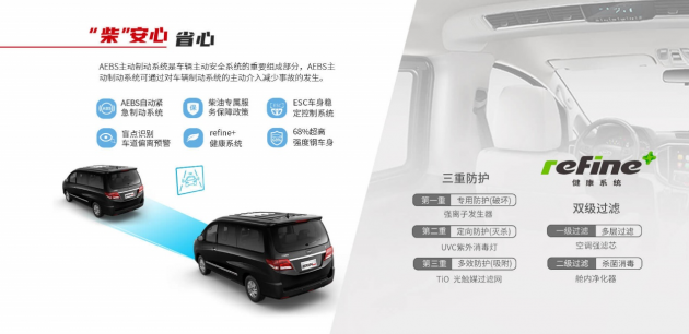 AEBS主動制動系統、refine+健康系統,以及盲點識別、車道偏離預警、ESC車身穩定控制系統等安全配置的全面應用,加上可靠性驗證的五星底盤設計以及柴油專屬服務體系,滿足了從乘坐到營運各方面的安全健康和售后保障。