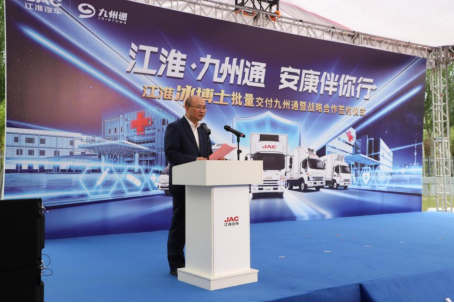 儀式現(xiàn)場,江汽集團控股公司黨委書記、董事長項興初出席并致辭。他表示,九州通醫(yī)藥集團作為國內(nèi)醫(yī)藥龍頭企業(yè),主動承擔社會責任,為我國打贏疫情防控阻擊戰(zhàn)做出了突出的貢獻。中國物流與采購聯(lián)合會構(gòu)建物流與采購生態(tài)圈,促進物流產(chǎn)業(yè)鏈上下游各單位合作,有效推動了江汽集團與九州通醫(yī)藥集團的深度合作。此次與九州通達成戰(zhàn)略合作,江汽集團愿持續(xù)不斷創(chuàng)新,攜手優(yōu)質(zhì)資源,以專業(yè)的產(chǎn)品、可靠的品質(zhì)、貼心的服務,助力醫(yī)藥物流行業(yè)的高質(zhì)量發(fā)展,打造裝備制造業(yè)與醫(yī)藥物流業(yè)合作雙贏的新生態(tài)。