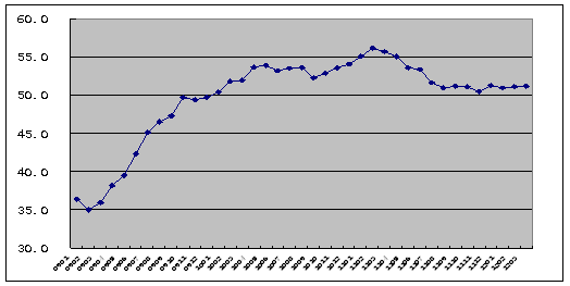 3月份,日本制造業經季節調整后的PMI升至51.1%,為去年8月份以來最高水平。該指數已連續四個月站在50%榮枯分水嶺上方。從分項指數來看,3月份,新出口訂單由上月的47.1%升至50.2%;生產指數由上月的51.3%升至52.2%,為去年10月份以來最高。PMI指數顯示,因企業為東北部地區災后重建擴大生產,當前日本制造業經濟活動擴張速度達到七個月以來最快。