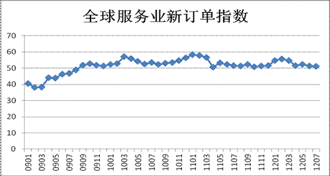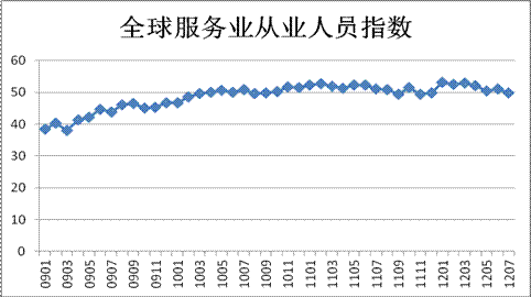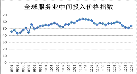 2009年1月—2012年7月全球服務業中間投入價格指數